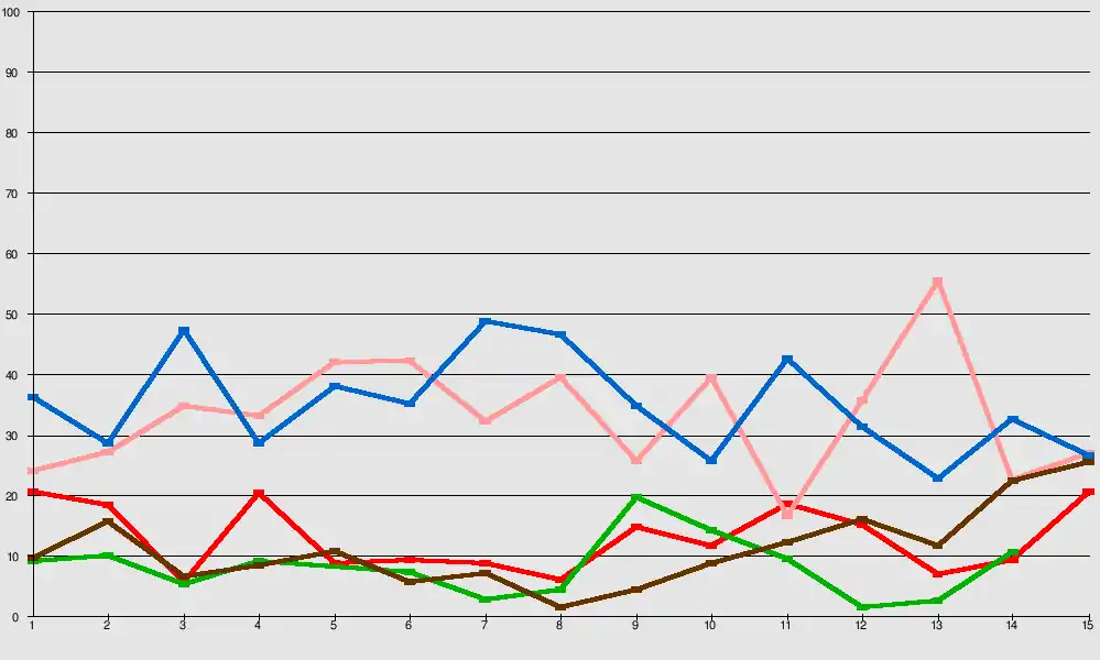 Afin de mieux se représenter l'évolution des votes au cours du temps, voici un graphique correspondant aux différentes élections depuis 1997.