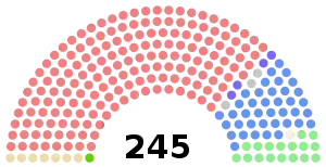 | Total sièges | 16 | 17 | 21 | 17 | 82 | 65 | 10 | 12 | 4 | 1 | 245 | ||