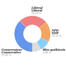 Bloc québécois Gilles Duceppe 75 51 48 49 -2 1 379 991 10,0 % - 0,5