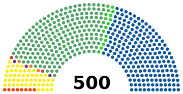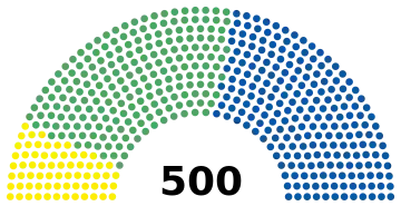 - 500 députés fédéraux. Membres de la Chambre basse du Congrès de l'Union, 300 membres élus par le principe de la majorité relative dans les circonscriptions uninominales et 200 élus par le principe de la représentation proportionnelle dans 5 circonscriptions plurinominales dans lesquelles le pays est divisé (40 sièges par circonscription), le tout pour un mandat de trois ans à compter du .