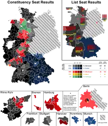 | Parti social-démocrate d'Allemagne (SPD) | 9 651 669 | 32,01 | 46 | 9 495 571 | 31,75 | 123 | 169 | 12 | ||||||