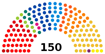 | 150 sièges de la Chambre des représentants (Majorité absolue : 76 sièges) | ||||||||||||||