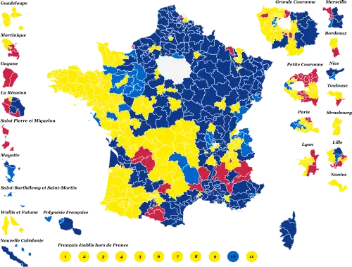 Depuis les municipales de 2014, la droite détient 572 communes de plus de 10 000 habitants, la gauche 349 et le Front national onze, la gauche ayant perdu 121 communes de plus de 15 000 habitants.
