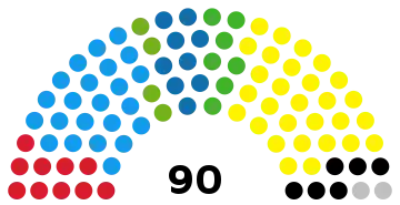 | 90 sièges de l'Assemblée nationale (Majorité absolue : 46 sièges) | ||||||||||||||