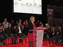 - Communes de 1 000 habitants et plus : scrutin proportionnel de liste avec prime majoritaire. Au premier tour, la liste qui remporte la majorité absolue et le vote d'au moins le quart des électeurs inscrits remporte 50 % des sièges, le reste est réparti entre toutes les listes ayant obtenu au moins 5 % des suffrages exprimés ; si aucune liste n'obtient la majorité absolue, un second tour a lieu auquel peuvent se présenter les listes ayant réuni au moins 10 % des suffrages exprimés au premier tour (les listes ayant obtenu au moins 5 % peuvent fusionner avec une liste qualifiée pour le second tour). Au second tour, la liste arrivée en tête obtient 50 % des sièges et le reste est réparti entre toutes les listes ayant obtenu au moins 5 %. En application de la loi de 2007 sur la parité[11], les listes doivent être composées alternativement d'un candidat de chaque sexe.
