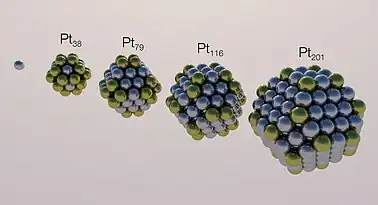 - stabilité : les petites nanoparticules ont tendance à perdre de la masse en raison de la diffusion de leurs atomes vers des particules plus grosses, selon le phénomène de maturation d'Ostwald ;