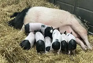 | Gestantes | Les femelles pleines vivent en groupe pendant leur gestation. Chaque truie peut avoir un peu plus de 2 portées par an d'une douzaine de porcelets chacune. La gestation dure 3 mois, 3 semaines et 3 jours. |