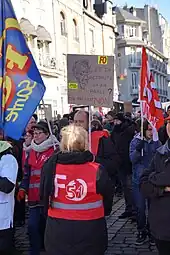 Confrontée à la plus longue grève de la SNCF[64] depuis plusieurs décennies, elle fait tout de même voter cette réforme à une large majorité[65]. Cette réforme lui attire l'hostilité d'une partie importante du monde cheminot et de la gauche radicale, qui l'accusent d'affaiblir le secteur ferroviaire, en particulier les petites lignes et le fret (Fret SNCF), en la tenant pour responsable de la fin du train de fruits et légumes reliant Perpignan à Rungis[66].