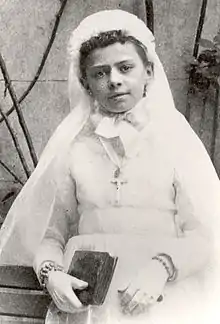 Sa première confession la marque durablement, elle considère ce jour comme celui de sa « conversion »[A 2], qui « détermina tout un éveil à l'endroit des choses divines ». À l’âge de 8 ans, en 1888, elle parle de sa vocation au chanoine Angles et lui dit qu'elle sera religieuse[C 6].