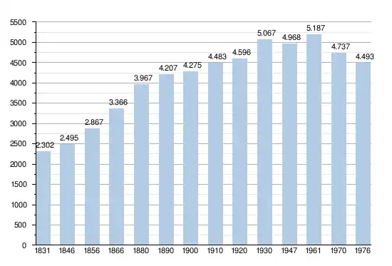 - Sources : INS, Rem. : 1831 jusqu'en 1970 = recensements, 1976 = nombre d'habitants au 31 décembre.[2]