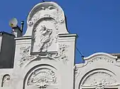 La façade comporte à son sommet un bas relief venu du bal Mabille[5].