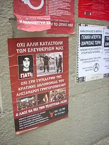 - En octobre 2010, le policier responsable de cette mort est reconnu coupable d'homicide volontaire et son collègue de complicité : AFP, « Lycéen tué en Grèce: le policier coupable », Figaro, (lire en ligne)