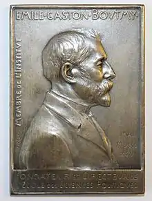 Une médaille à l'effigie d'Émile Boutmy a été exécutée par le graveur Oscar Roty en 1896. Un exemplaire est conservé au musée Carnavalet (ND 0584) au musée d'Orsay[14] ainsi que dans le « petit hall » de SciencesPo.