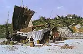 - Paris, musée du Louvre : Trois barques de pêche avec leurs filets séchant, à Brest de Camfrout, dessin.
