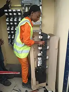 Jeune femme travaillant pour la Société nationale d'électricité.