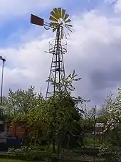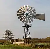 L'ancêtre de l'éolienne est le moulin à vent, apparu en Perse dès l'an 620 et suivi de la pompe à vent, apparue au IXe siècle dans l'actuel Afghanistan. De nos jours, ils sont encore utilisés couplés à une pompe à eau, généralement pour drainer et assécher des zones humides ou au contraire irriguer des zones sèches ou permettre l'abreuvage du bétail.