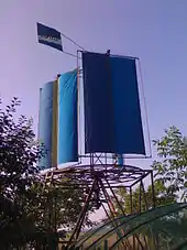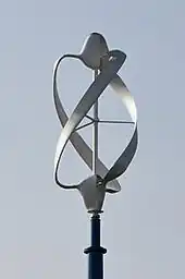 Outre les éoliennes classiques à axe horizontal parallèle à la direction du vent, les éoliennes dites « à axe vertical » présentent un axe perpendiculaire à la direction du vent. L'axe est souvent positionné à la verticale, mais des éoliennes de ce type peuvent aussi être positionnées à l'horizontale[18],[19]. Ce type d'éoliennes se décline suivant plusieurs principes.