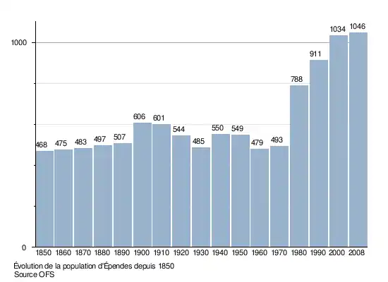 Le graphique suivant résume l'évolution de la population d'Épendes entre 1850 et 2008[4] :