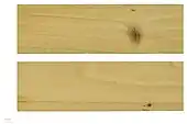 Le bois d’épicéa commun est blanc (aubier non différencié). Une fois scié, on le distingue difficilement du sapin (le bois blanc crème de l'épicéa est plus brillant, avec des canaux résinifères normaux mais parfois difficiles à voir)[30] et porte cette dénomination. Dans le commerce, le bois d'oeuvre n'est pas identifié en tant qu'épicéa, mais en tant que « sapin ». Les billons de faible diamètre sont surtout destinés à l'industrie (pâte à papier, panneaux de fibres, emballage, coffrage) ; les grumes sont transformées en bois de charpente. Toutefois, si les accroissements sont fins et le bois tendre, donc de haute qualité, il servira à la menuiserie, au placage, au déroulage, à la fabrication de poteaux et de perches, mais aussi à la lutherie pour les plus beaux bois. Les chutes de scierie (dosses et sciures) sont soit transformées en granulés pour le chauffage, soit en plaquettes forestières (chauffage industriel ou méthanisation).