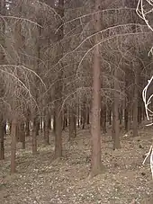 À la suite des plantations massives d'épicéas et d'un temps plus sec, les plantations d'épicéas sont dévastées par les scolytes[16]. À partir de 2018, on constate une Crise des scolytes en France et en Belgique.