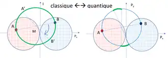 Dans l'espace des moments, pour conserver l'énergie et l'impulsion, les collisions élastiques entre 2 particules A et B, de moments respectifs et , se traduisent par une rotation aléatoire de leur moment relatif (voir l'article Équation de Boltzmann). Le principe de Pauli en mécanique quantique, implique que pour que la collision soit possible, l'espace des phases pour les impulsions finales et ne soit pas occupé (voir figure). En mécanique classique, la rotation aléatoire peut donc prendre toutes les valeurs de 0 à ; en mécanique quantique, seules les rotations conduisant à des états inoccupés sont possibles et ont donc une probabilité fortement réduite.