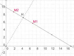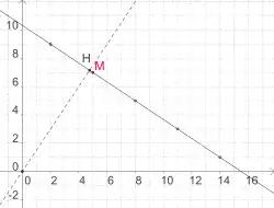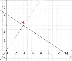 ![]() Résolution graphique de l'équation 9x + 12y = 483. |