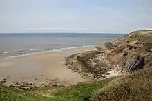 - les falaises d’Équihen, d’une superficie de 228 ha et d'une hauteur maximale de 168 m. Ces falaises Jurassiques de l’extrémité méridionale du Boulonnais plaquées de dunes fossiles, sont, comme celles du cap Gris-Nez, composées de grès du Portlandien avec, au pied de rochers des marnes Kimméridgiennes[25] ;