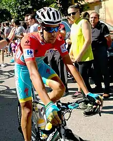 Lors du Tour d'Espagne, Astana aligne ses trois leaders Nibali, Aru et Landa. Dès la deuxième étape, Nibali est exclu après avoir été tracté par une voiture et Landa perd beaucoup de temps. Aru reste donc le dernier atout pour Astana. Lors de la onzième étape, l'équipe réalise un coup de force, Aru finissant deuxième derrière Landa et prenant le maillot rouge. Par la suite, Joaquim Rodríguez, puis Tom Dumoulin repassent devant. Lors de la vingtième étape, bien aidé par son équipe et notamment Landa, Aru attaque à plus de quarante kilomètres de l'arrivée et fait craquer le maillot rouge, Dumoulin. Il reprend la tête du classement général et remporte le lendemain son premier grand tour. En fin de saison, Nibali remporte coup sur coup la Coppa Bernocchi, les Trois vallées varésines et le Tour de Lombardie, la dernière classique monument de l'année.