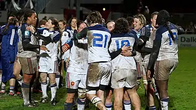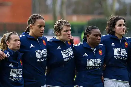 Lors du Tournoi des Six Nations 2017, l'équipe de France termine à la troisième place derrière l'Angleterre et l'Irlande, avec deux défaites contre celles-ci. Au mois d'août, la France dispute la Coupe du monde en Irlande. Les Bleues sortent invaincues de leur poule, où figurent également le Japon, l'Australie et l'Irlande[6]. Elles échouent à se qualifier en finale après une défaite 20 à 3 contre l'Angleterre[7], mais accrochent la troisième place face aux États-Unis sur le score de 31 à 23[8]. La compétition permet aussi à la France de passer au rang de troisième nation mondiale au classement World Rugby et de dépasser le Canada[9].