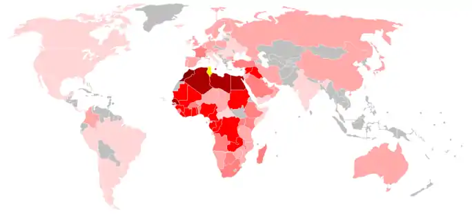 La qualification de la Tunisie pour la coupe du monde 2018 et ses résultats positifs dans les matchs amicaux contre l'Iran (1-0)[247] et le Costa Rica (1-0)[248] la conduisent pour la première fois à la quatorzième place du classement mondial de la FIFA, après avoir été la première des équipes africaines, surpassant des équipes comme l'Italie, le Costa Rica et les Pays-Bas.