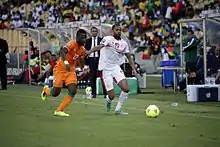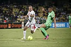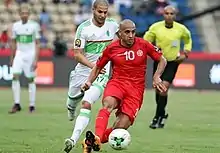 Lors de la finale du tournoi, la Tunisie termine en tête de son groupe pour la première fois depuis 2008, en battant la Zambie (2-1)[223] et en faisant match nul avec le Cap-Vert[224] et la RD Congo[225] avec le même résultat (1-1) ; elle est cependant éliminée en quarts de finale après une défaite controversée (1-2) face à l'hôte, la Guinée équatoriale ; la Confédération africaine de football bannit l'arbitre Rajindraparsad Seechurn pendant six mois pour sa « mauvaise performance » dans le tournoi[226],[227],[228]. En , Leekens démissionne pour des raisons de sécurité après avoir restauré le glamour de l'équipe.