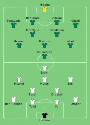 La Tunisie se qualifie pour les quarts de finale de la compétition pour la troisième fois consécutive mais avec difficulté, après une défaite au premier tour contre le Nigeria[99], une victoire sur le Congo[100] et un match nul face au Maroc[101] ; l'équipe réussit à se qualifier pour la demi-finale en battant l'Égypte[102] avant de s'incliner contre le Cameroun[103] et de terminer la compétition à la quatrième place avec une défaite aux tirs au but contre l'Afrique du Sud[104].