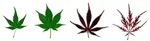 - Acer palmatum subsp. matsumurae, reconnaissable à la profondeur de ses lobes effilés.