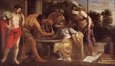 Érasme Quellin le Jeune (ou Erasmus Quellinus II, Kwelien, Quellien, Quellincs, Quellingh[4]), né le à Anvers et mort le dans cette ville, est un peintre, graveur, dessinateur et concepteur de tapisseries flamand qui travaille dans divers genres, dont la peinture d'histoire, le portrait, les scènes de bataille et peintures animalières. Il est un élève de Pierre Paul Rubens et est l’un des plus proches collaborateurs de Rubens dans les années 1630. Après la mort de Rubens en 1640, il devient l’un des peintres les plus prolifiques et les plus prospères des Pays-Bas méridionaux du XVIIe siècle[5].
