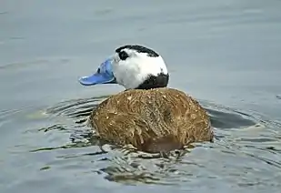 L’Érismature à tête blanche (Oxyura leucocephala) est une espèce de canards à large bec plat et bleu, et à la queue rigide. Cette espèce a disparu de France en tant que nicheuse (elle s'est reproduite en Corse jusqu'en 1966) selon Dubois et al. (2008). Elle est devenue assez rare au sud de l'Europe où elle est considérée comme en danger. L'expansion d'une espèce exotique introduite proche (l'érismature rousse : Oxyura jamaicensis) est également source de perte de diversité génétique[1],[2] et de pollution génétique pour l'espèce par suite d'hybridation[3].