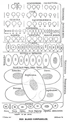 Chez les vertébrés non-mammaliens, les globules rouges sont plus grands et ont conservé leurs noyaux, et, comme chez les mammifères, utilisent l'hémoglobine pour fixer l'oxygène et le dioxyde de carbone. Les amphiumas, un genre d'amphibien, ont des globules rouges particulièrement grand, 70 μm x 40 μm[11], environ 10 fois plus grand qu'un globule rouge humain.