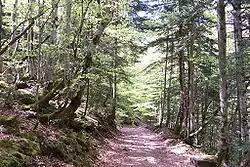 Il est composé d'une forêt mixte de feuillus et de conifères. Des pinèdes sylvestres mésophiles y sont également fréquentes. Le hêtre et le sapin sont les essences typiques de l'étage montagnard.