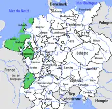 - les « Pays de par-deçà » au nord : Flandre, Artois, Picardie, Hainaut, Brabant, Hollande, Zélande, Gueldre, Limbourg, Luxembourg, etc.
