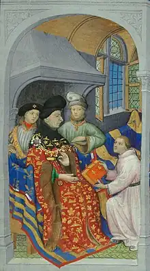 Aussi, en 1473, lors de la conférence de Trèves (-), l'empereur Frédéric III, qui avait refusé d'aider Charles le Téméraire à se faire élire roi des Romains pour en faire son successeur[25], accepte d'ériger ses possessions relevant de l'Empire en un royaume de Bourgogne, dont le roi serait en principe vassal de l'empereur, de même que le roi de Bohême.