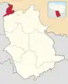 | Municipalité | Localisation | Chef-lieu | Nombre de paroisses civiles | Paroisses civiles (capitales)[3] | Population (2001[2]) | Population (2011[2]) |
