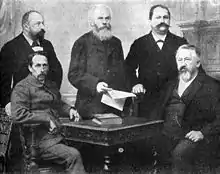 De son côté, la société du Grütli, fondée à Genève en 1838 sous la forme d'une association patriotique de compagnons artisans, se développe rapidement sous le régime de l'État fédéral jusqu'à compter 1 282 membres répartis dans 34 sections en 1851 et regroupant, outre les artisans, des employés, des fonctionnaires, des ouvriers et des agriculteurs[60]. C'est de cette époque que datent les premiers représentants des ouvriers dans les parlements cantonaux : Pierre Coullery est élu à Berne en 1849, Johann Jakob Treichler à Zurich en 1850 et Karl Bürkli également à Zurich, l'année suivante[61].