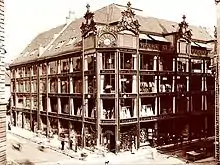 110 000 places de travail en 1850 contre 280 000 en 1880 : ces chiffres montrent la progression du secteur des services pendant la seconde moitié du siècle : les transports, les assurances et surtout le tourisme et la distribution connaissent des développements particulièrement importants[nhss 12]. Les premiers grands magasins sont créés (le premier d'entre eux, le Jelmoli sur la Bahnhofstrasse de Zurich, est inauguré en 1833), de même que les coopératives que sont l'union suisse des coopératives de consommation (qui deviendra la Coop en 1970) et la Migros en 1925 ; en parallèle, le commerce de détail s'organise en créant des centrales d'achat[52].