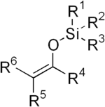 En chimie organique, un éther d'énol silylé est un groupe fonctionnel combinant un éther d'énol et un éther de silyle unis par leur atome d'oxygène. Les composés de ce type constituent d'importants intermédiaires en synthèse organique. On peut les obtenir en faisant réagir des cétones en présence d'une base forte et de chlorure de triméthylsilyle, ou d'une base faible et de triflate de triméthylsilyle. Ils se forment également par capture d'un énolate apparu au cours d'une réaction d'addition conjuguée. Une synthèse exotique fait intervenir le réarrangement de Brook de substrats appropriés[1].