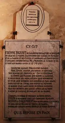 - « Bezout (Étienne) », dans Louis-Gabriel Michaud, Biographie universelle ancienne et moderne : histoire par ordre alphabétique de la vie publique et privée de tous les hommes avec la collaboration de plus de 300 savants et littérateurs français ou étrangers, 2e édition, 1843-1865 [détail de l’édition], vol. 4, p. 263.