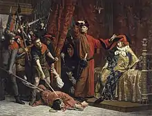 Le maréchal de Champagne Jean de Conflans et le maréchal de Normandie Robert de Clermont sont tués devant le prince, qui est couvert de leur sang et croit son existence menacée. Étienne Marcel l’oblige à coiffer le chaperon rouge et bleu des émeutiers (aux couleurs de Paris), alors que lui-même met le chapeau du Dauphin ; il le contraint ensuite à renouveler l’ordonnance de 1357[63].