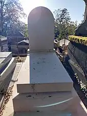 Après avoir un temps reposé dans un caveau provisoire, il est transféré en bordure de la 56e division du cimetière du Père-Lachaise à Paris 20e[23].