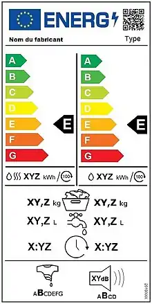 Depuis le , chaque étiquette de Lave-linge sèchant comporte les informations suivantes :