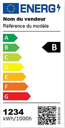 À la suite de la directive 92/75/CEE du Conseil du , la plupart des appareils électroménagers, les ampoules électriques doivent avoir une étiquette-énergie.