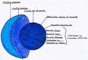 Les étoiles étranges seraient composées d'une couche de matière ordinaire composée de neutronium, de matière dégénérée (électrons + nucléons) et d'un noyau fait de matière étrange et de quarks déconfinés.