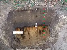 Les anthrosols plaggiques (plaggen soil en anglais, plaggenboden ou plaggenesch en allemand et plagengronden en néerlandais) sont un type d'anthrosol créé par l'apport régulier de matière organique par étrépage sur des arénosols et des podzols. L'horizon plaggique mesure entre 40 et 150 cm de hauteur et présente une coloration brunâtre ou noirâtre, une texture sableuse à sablo-limoneuse et une teneur en carbone organiques supérieure à 0,6%[4]. L'épaisseur de cet horizon construit par l'activité agricole crée des paysages caractéristiques marqués par de brutales variations de l'élévation des champs[5].